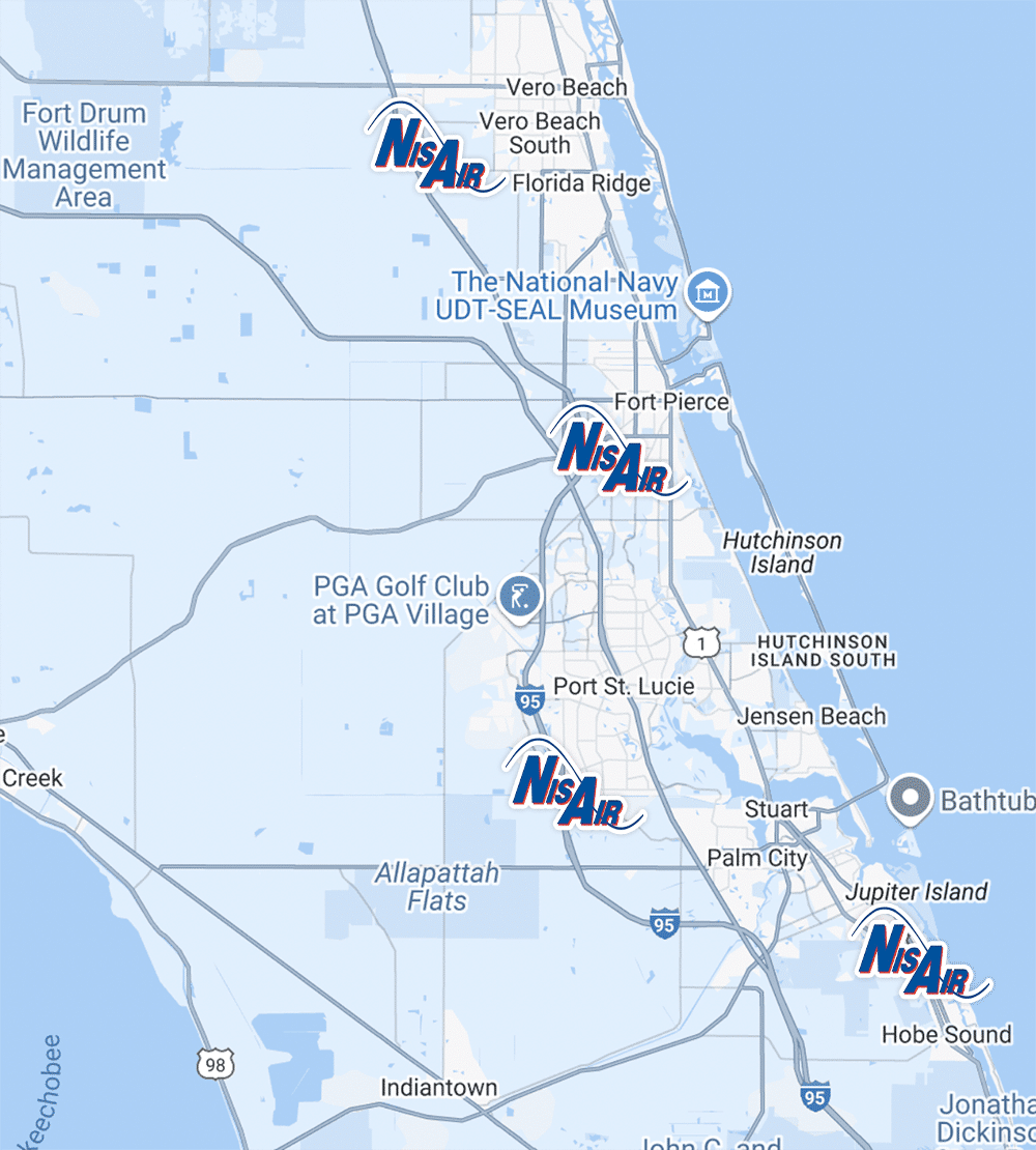 NisAir Air Conditioning proudly serves Fort Pierce and the surrounding areas with top-quality HVAC solutions. No matter where you are on the Treasure Coast, our team is ready to bring comfort to your home or business.